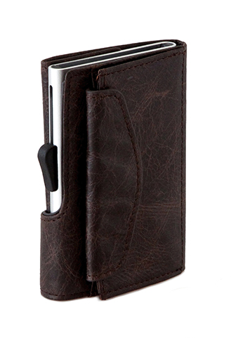 The classic c-secure wallet but this time with space for coins. These wallets make room for up to 7 cards and offer an additional coin pocket. The vintage edition is made of vintage bovine leather, lightly buffed natural grain. The classic version consists of full size nappa bovine leather. The prestige range is made of finished bovine split leather.